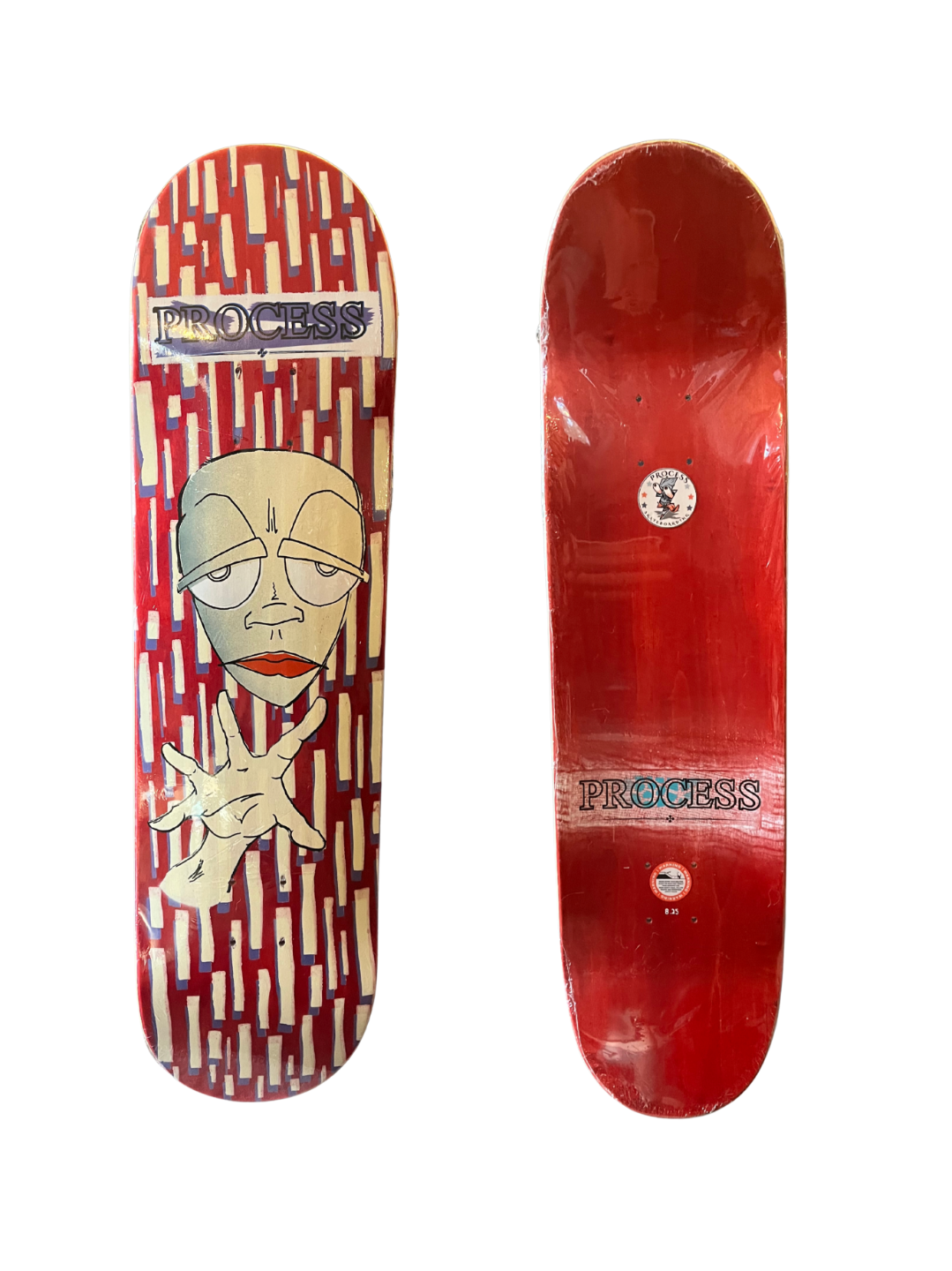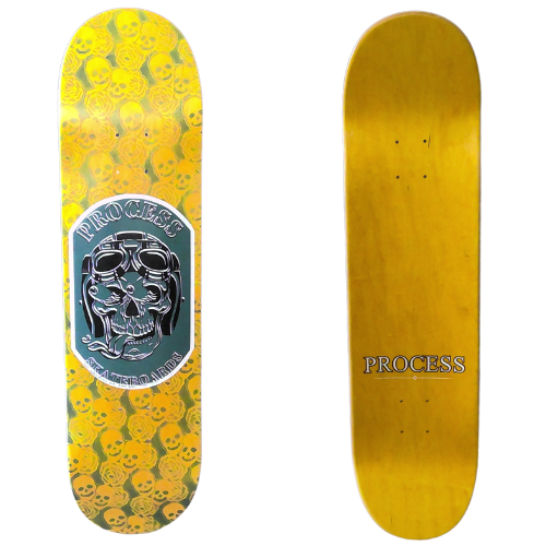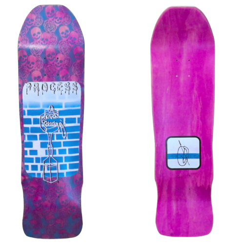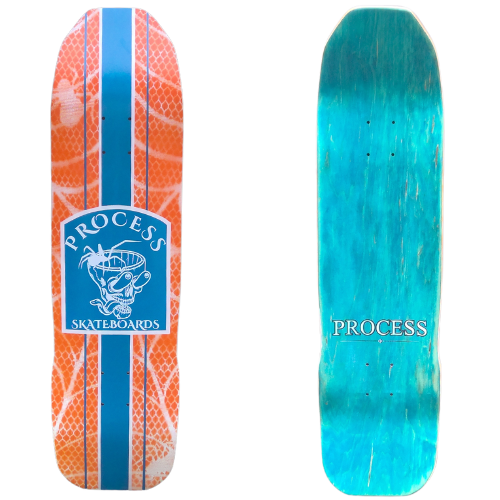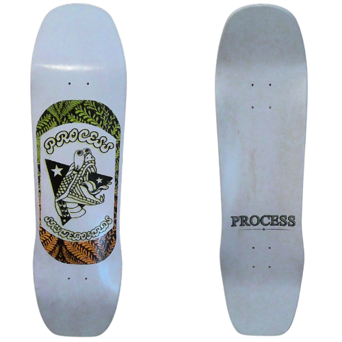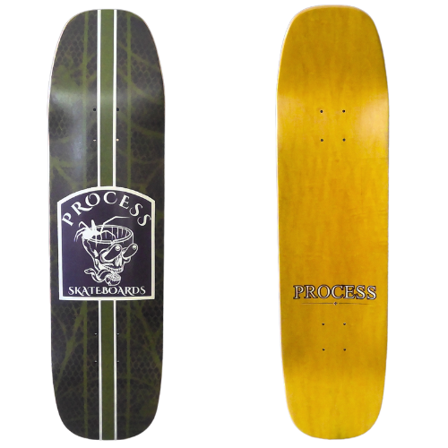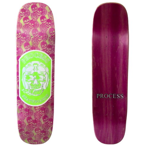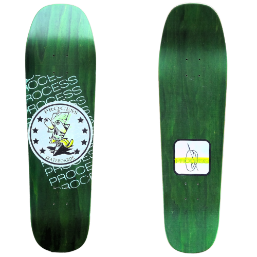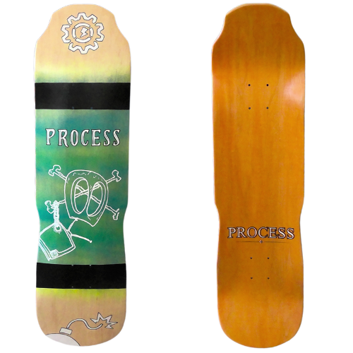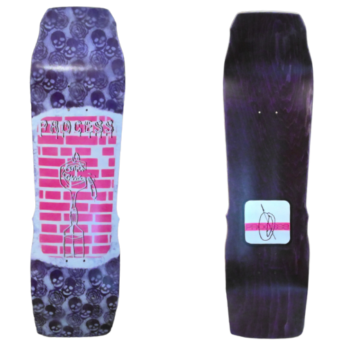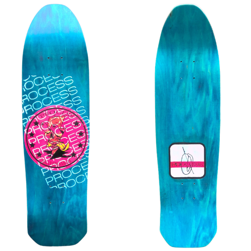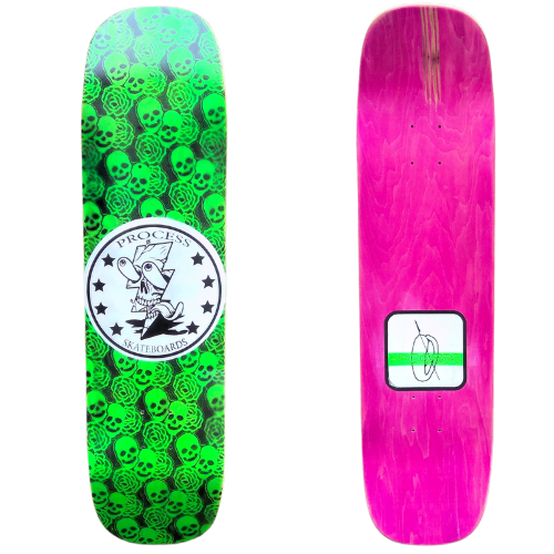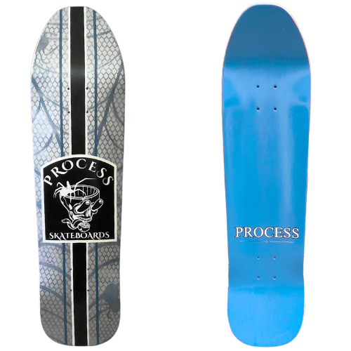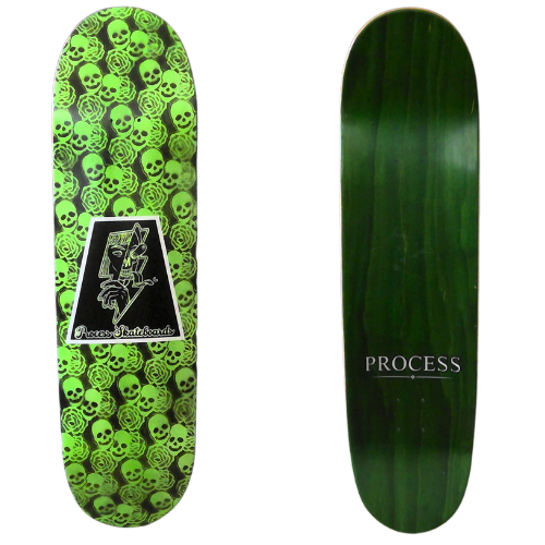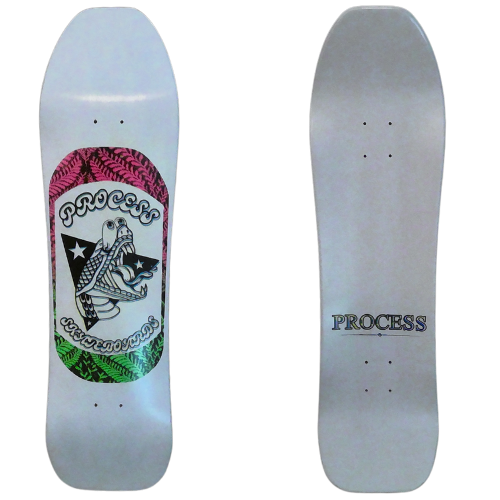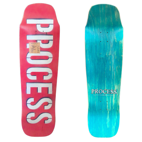 All PROCESS SKATEBOARDS are cut from templates. This guarantees that all shapes can be identically recreated. However, the screens used for screen printing the graphics are sometimes washed and reused for a new graphic. This means that the decks you see listed here are the only ones made. Some favorite graphics may stay around longer than others but no 2 identical colorways will ever exist.