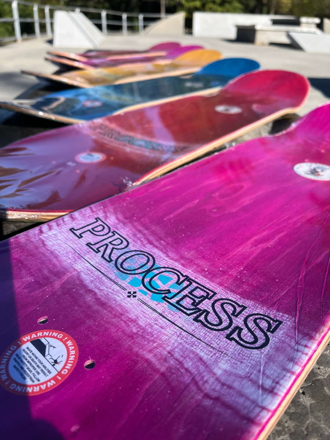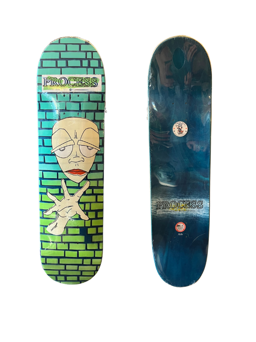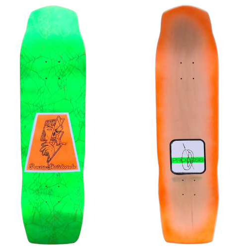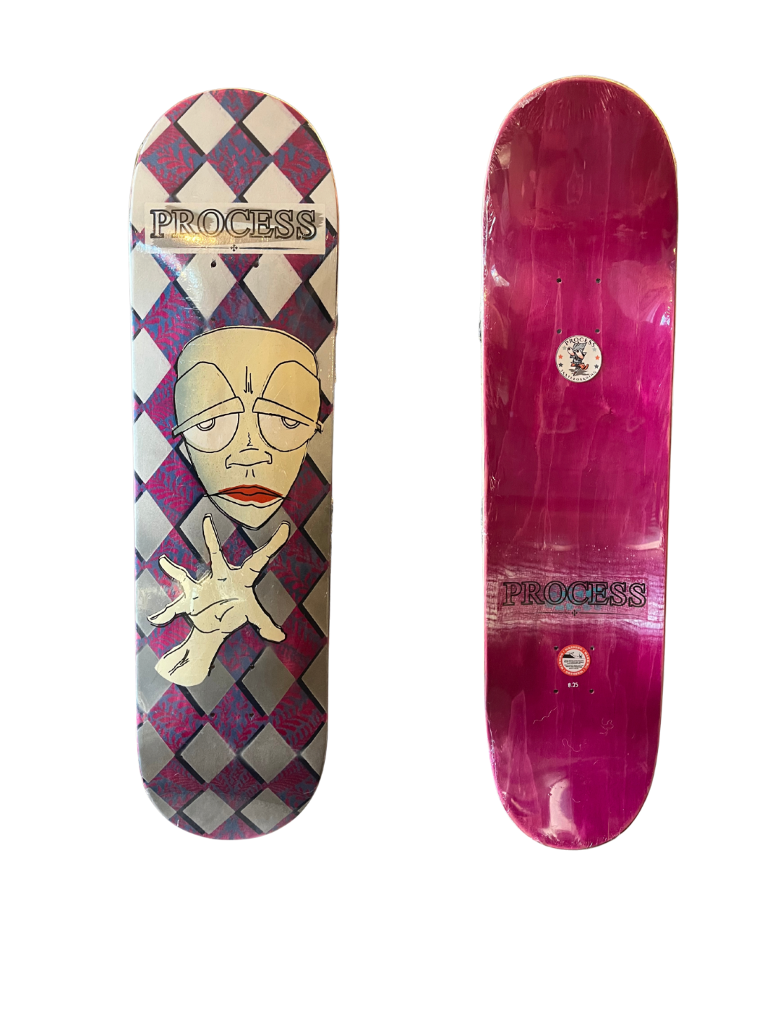 All PROCESS SKATEBOARDS are cut from templates. This guarantees that all shapes can be identically recreated. However, the screens used for screen printing the graphics are sometimes washed and reused for a new graphic. This means that the decks you see listed here are the only ones made. Some favorite graphics may stay around longer than others but no 2 identical colorways will ever exist.